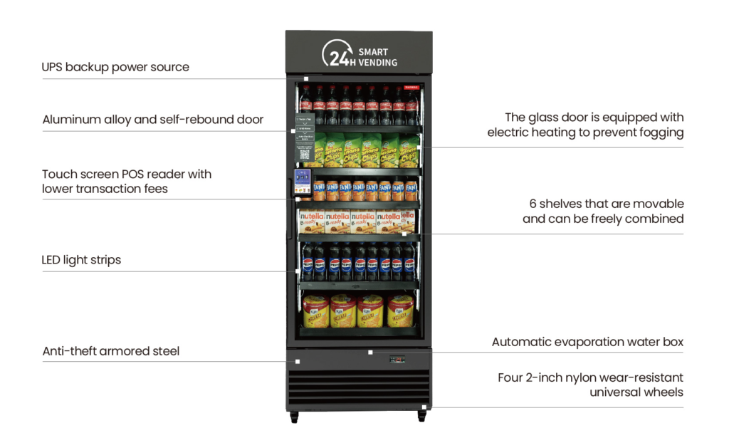 The structure is simple, rarely needs maintenance, and items will never get stuck. Vending machines with card readers make shopping more convenient and can flexibly reprice and set promotions.